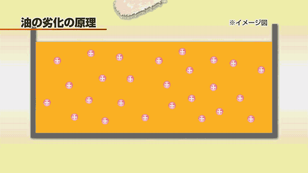 Các nguyên tử mang điện tích này phá vỡ cấu trúc carbon của dầu chiên, tức là gây lên phản ứng oxy hóa dầu chiên
