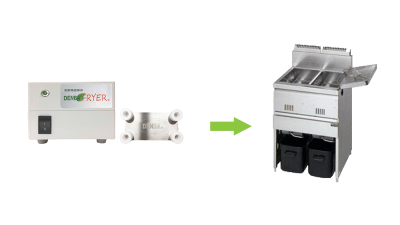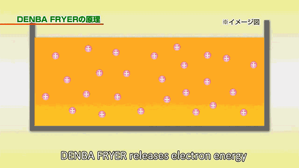 Denba Fryer tạo ra một môi trường sóng tĩnh điện tác động vào các phân tử nước trong tế bào thực phẩm, làm cho chúng rung động, không thể phản ứng với dầu chiên và nhanh chóng bốc hơi ra khỏi bể dầu.